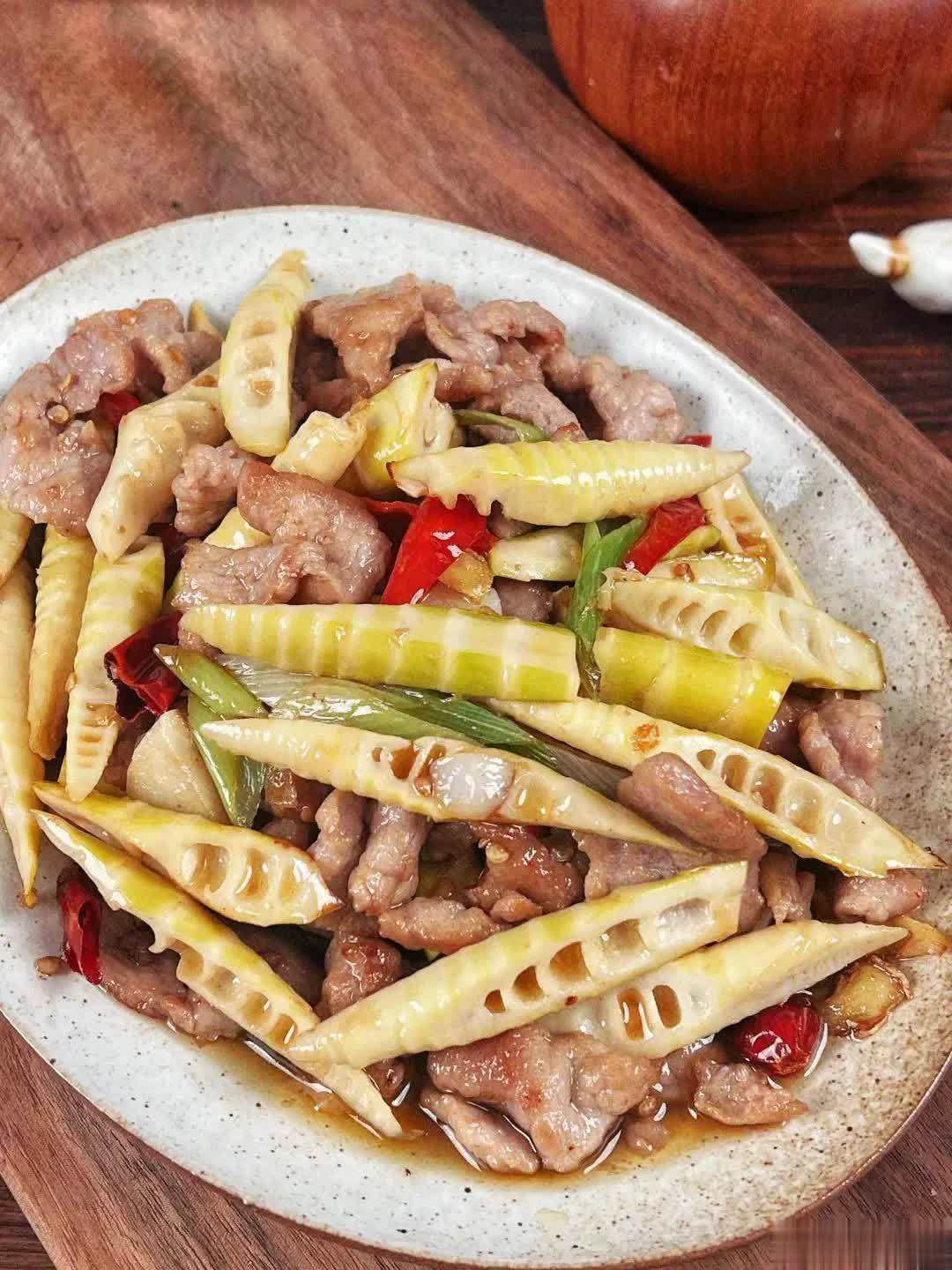 ✅ 亮点:春笋冒尖正是清明后最金贵的“升阳菜”,脆嫩里带着向上钻的生机。搭上瘦肉片同炒,动物蛋白配植物纤维,既借笋的清气疏通冬日积滞,又用肉的温厚稳住体力。一盘下去,阳气顺了,胃口开了,春困也散了。