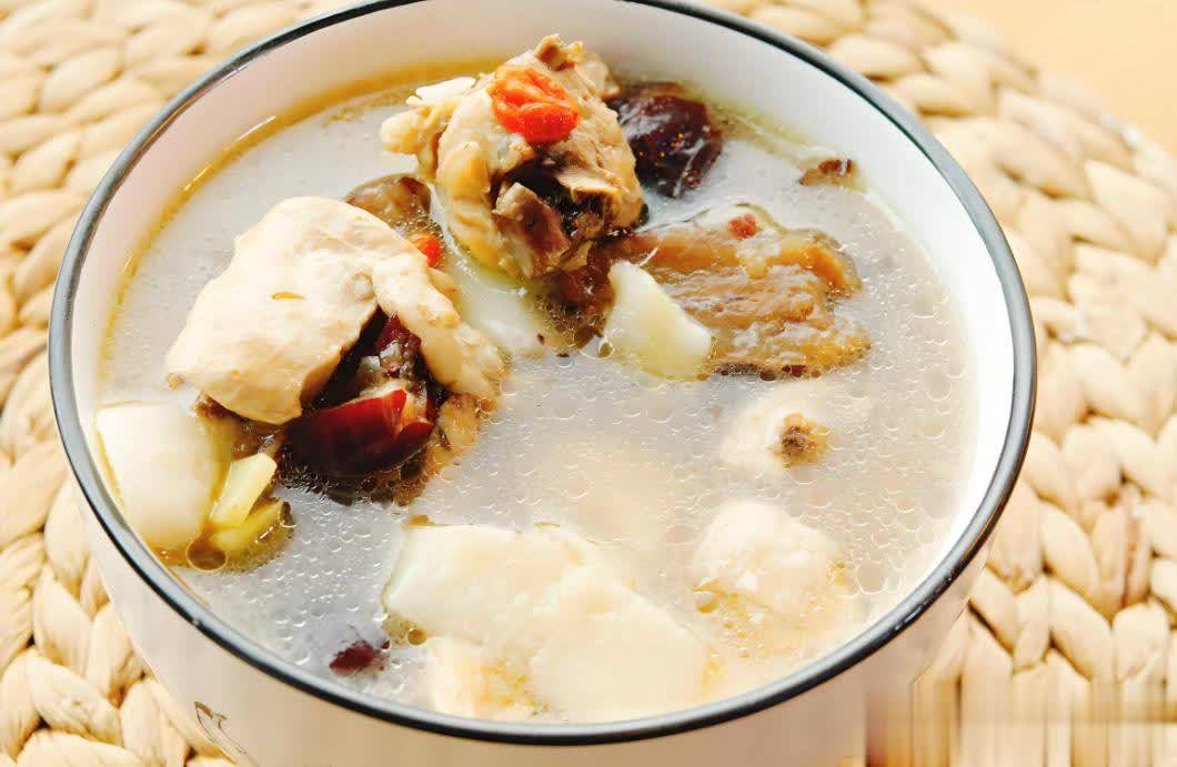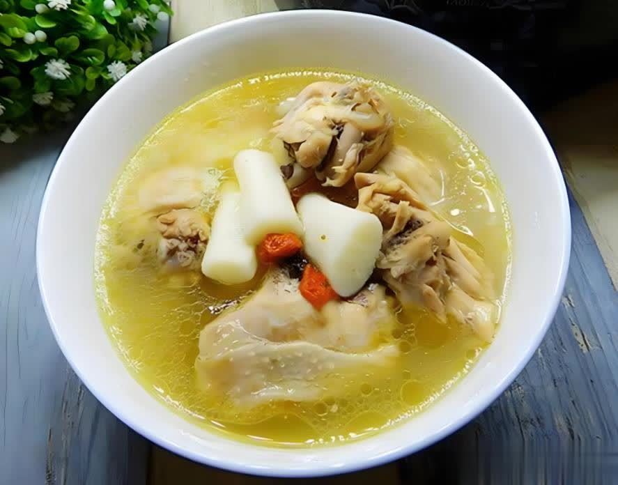 4.加入山药:将切好的山药块放入锅中,继续慢炖,保持汤面微开锅。山药能吸收鸡汤的精华,炖煮后口感绵密,汤味更浓郁。